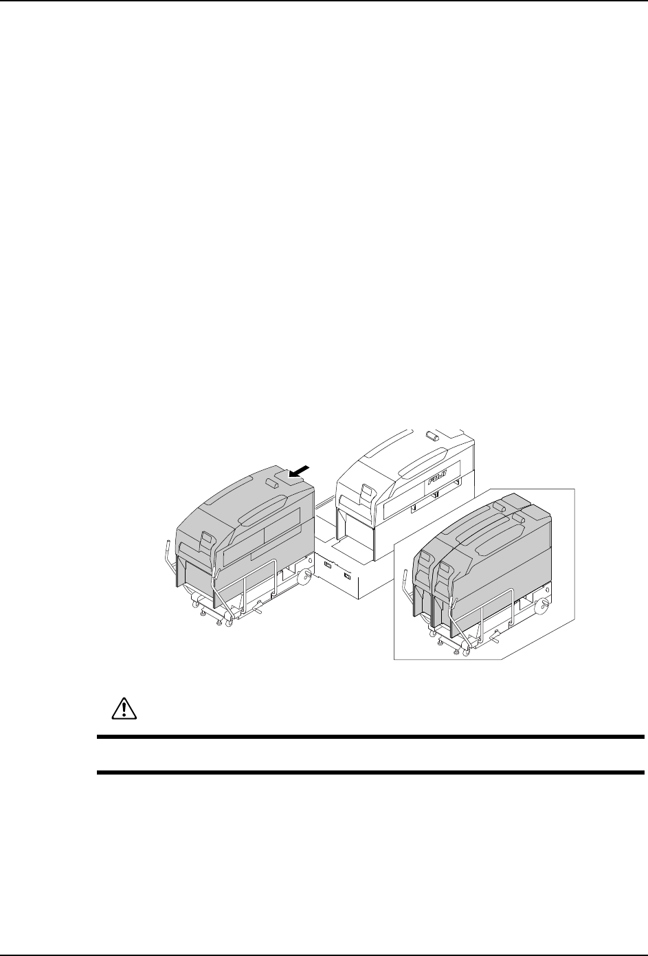 QD145-15 5. 基本操作 NXT II 机械手册 97 b. 模组移动结束后,将 MCU 的旋钮对准 「LOCK」的位 置。固定模组在 MCU 上。 c. 从基座侧拉出电缆托架,小心地从模组中 取出。 9. 降下 MCU 的后轮 ( 仅仅限于用步骤 (3) 调整水平的时候 ) a. 旋转摇手柄,降低后轮 ( 提升升降脚 ) b. 同样,前轮也下降。 01MEC-0439S ሣ㬑ᵓᇐ䔼 NXTOPE006Sb ᮟ䪂 注意 在机器前…