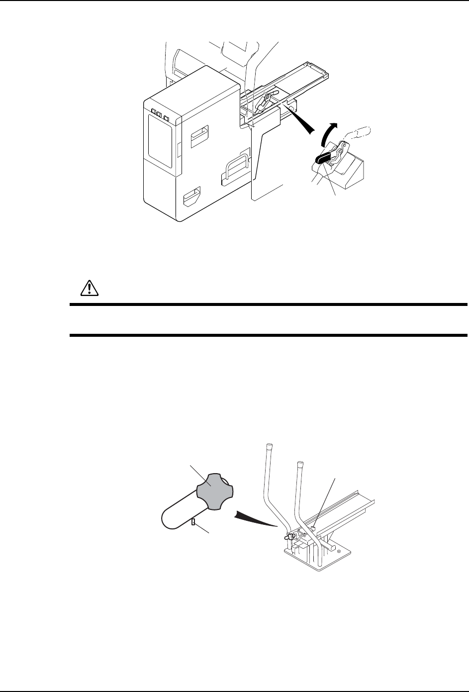 8. 按下料盘单元 -M 中央部的夹紧杆,夹紧在模组上。