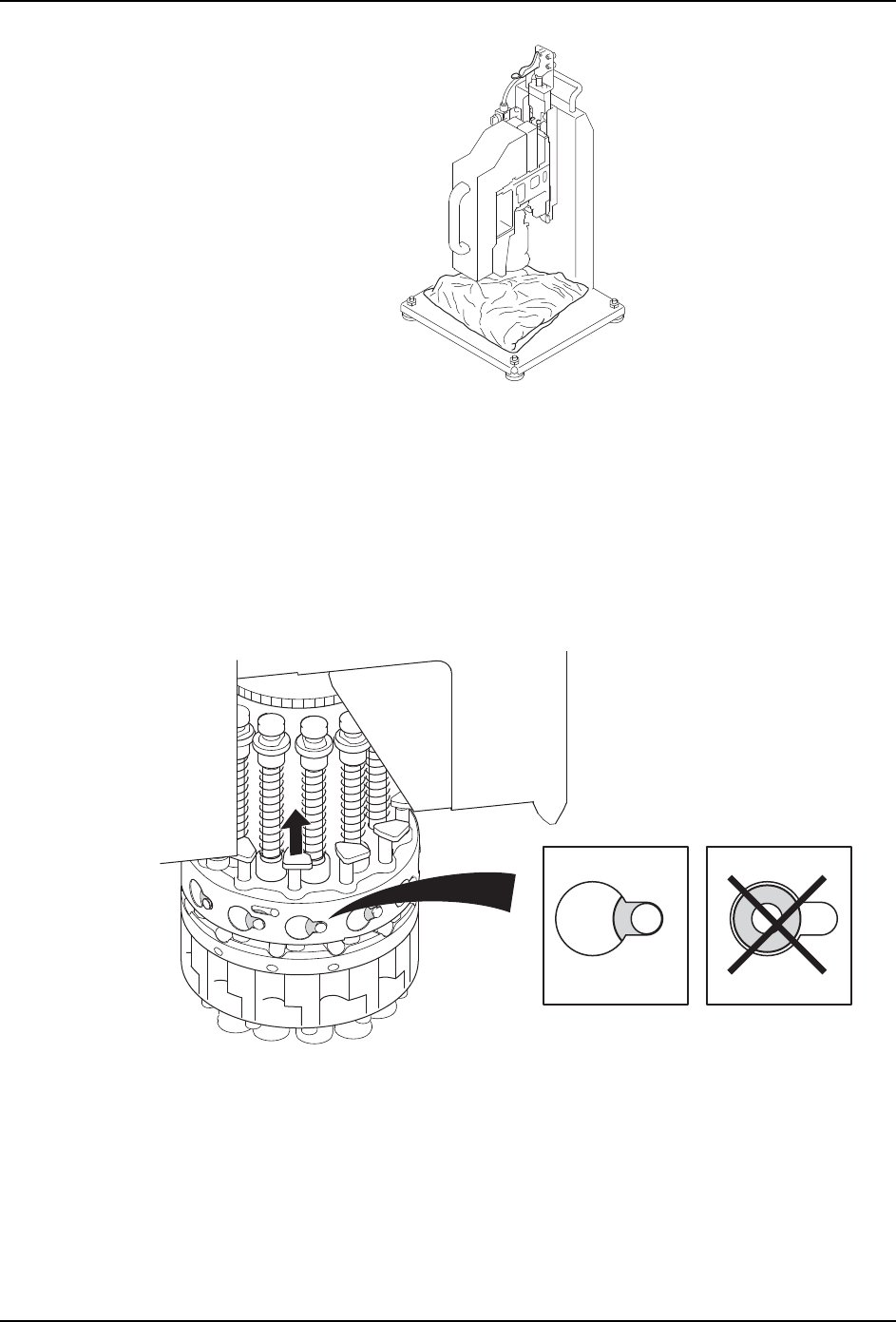 5. 拿住贴装工作头的手柄,请将工作头的夹紧部挂在吸嘴头上。将工作头清扫器上部拉杆