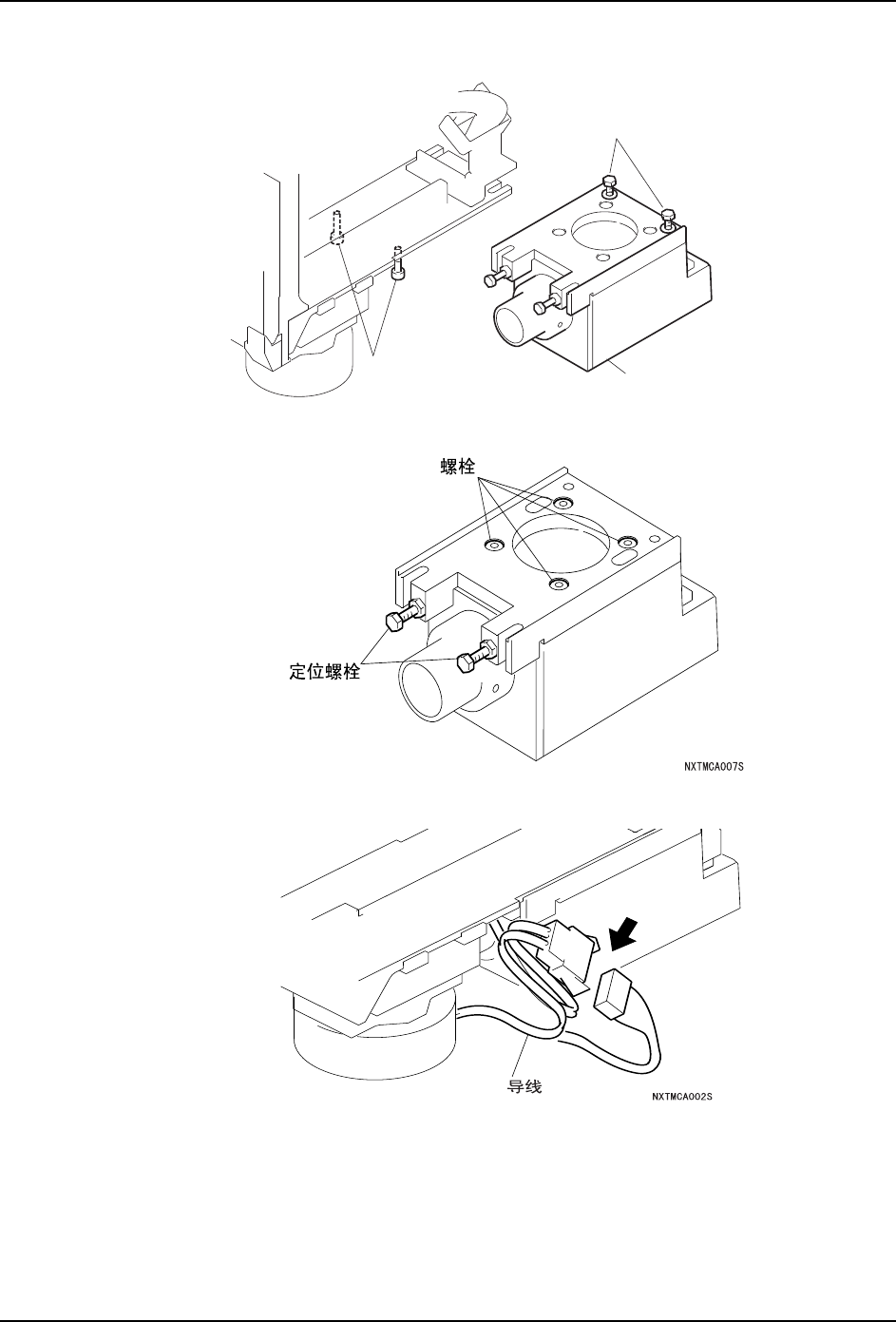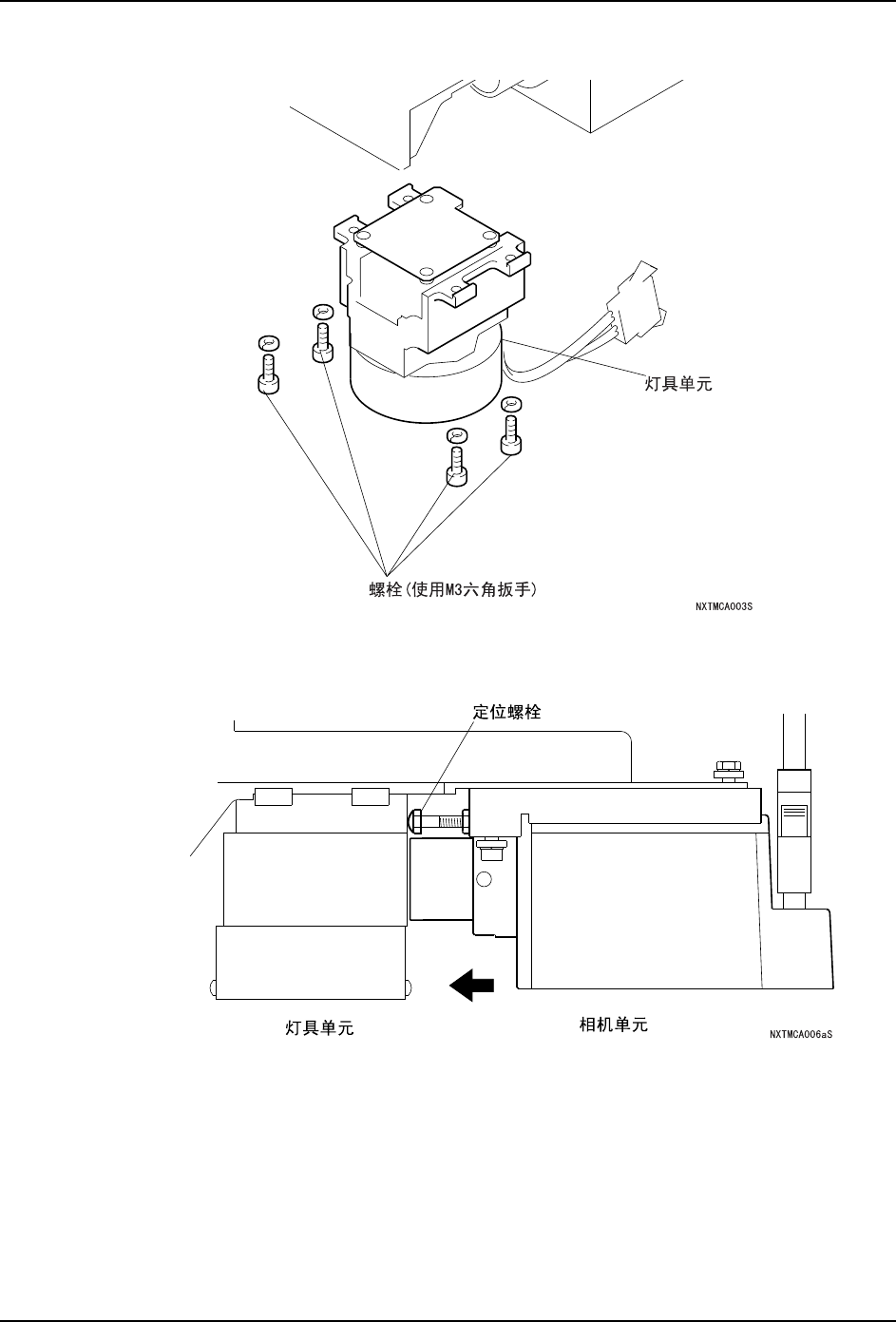 QD145-15 8. 部件的更换 NXT II 机械手册 437 5 . 拧 松 螺 栓( 2根)帽 和 六 角 螺 栓( 2根) 、 将 相 机 向 后 方 滑 出 并 取 下 。 注意 )请绝对不要松动相机单元的螺栓和定位栓。 6. 拆下灯具单元的连接线插座。 1;70&$6E Ⳍᴎऩܗ ݁㾦㶎ᷧ 㧔 Փ⫼0݁㾦ᡇ 㧕 㶎ᷧᐑ 㧔 Փ⫼0݁㾦ᡇ 㧕