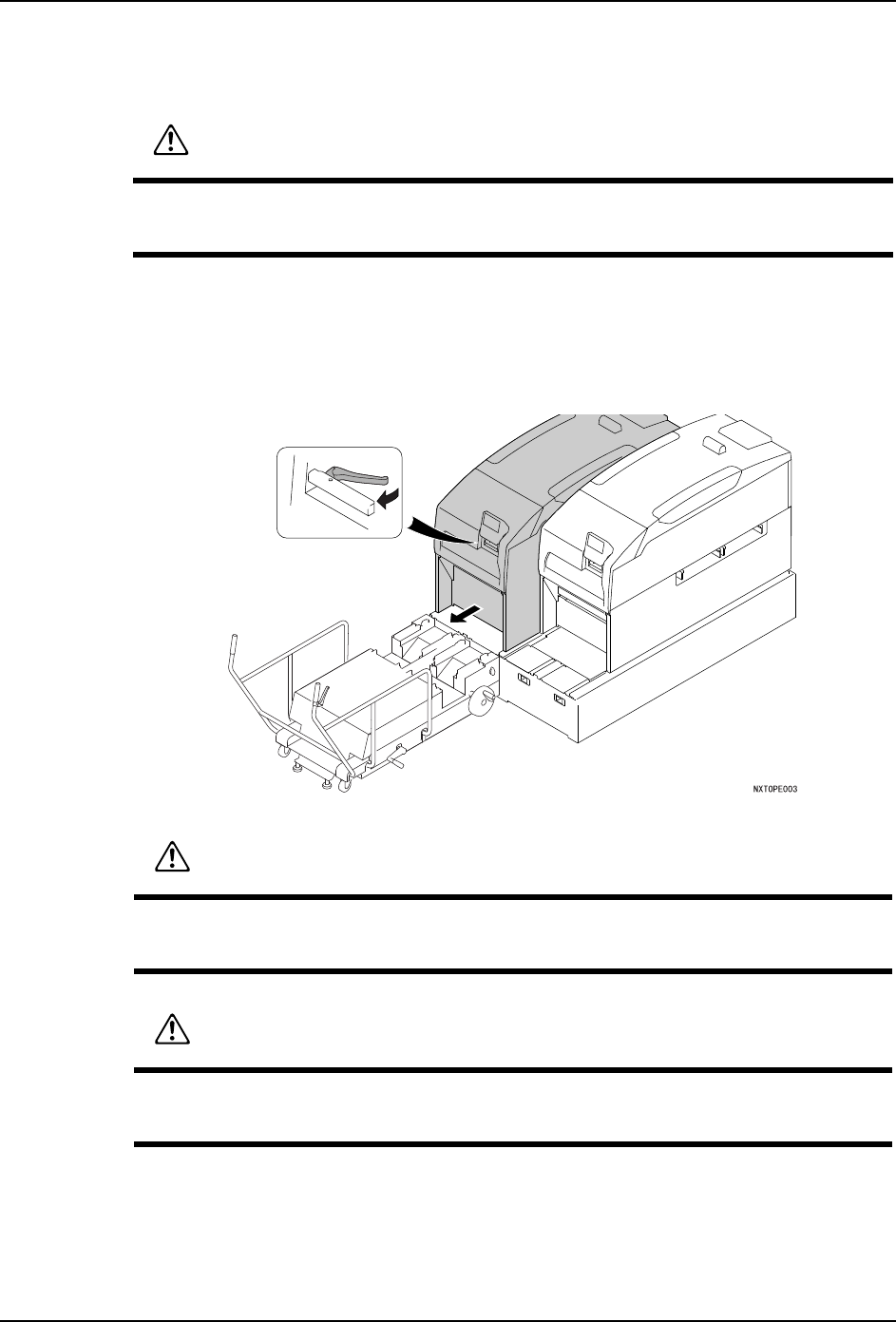 5. 基本操作 QD145-15 94 NXT II 机械手册 b. 同样地旋转摇手柄,提升后轮 ( 使升降脚接触地面 )。一边看水平仪, 一边尽可能使 MCU 的上面调节成为 水平状态。 6. 将模组从基座中里拉出一半 a. 将 MCU 的 旋纽旋转到 "UNLOCK "。 备注 )MCU 与基座没有正确地连接时,不能旋转 MCU 的旋钮。 b. 按下操作面板的 「MANUAL」按 钮,可以切换到手动操作画面。 c…