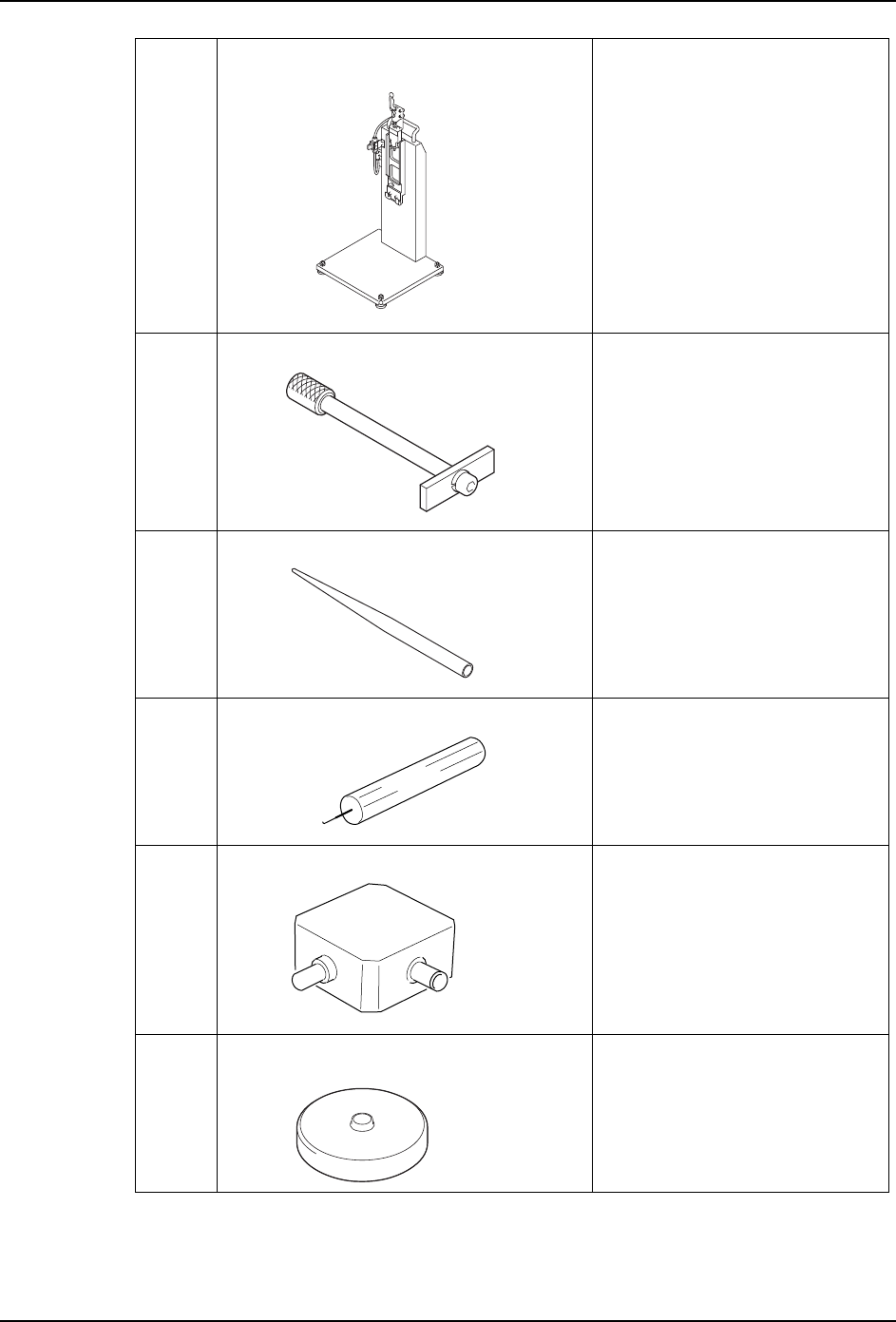 QD145-15 6. 预防保养 NXT II 机械手册 193 治具 单头扳手 PBOOEY* V12 工作头 机械阀的拆卸用 治具 注射筒 S61 439 V12 工作头 升降杆,升降齿轮用 注射筒可以使用在所有的贴装工 作头的加油作业中。 使用几种润滑油的时候,请根据 润滑油准备各自的注射筒。 治具 转矩螺丝刀 (AA9ZT**) 机械阀的装卸用 工具 螺丝钳一套 - 六角扳手一套 - 一字形螺丝刀 - 正十字形螺丝刀 - 转矩扳…