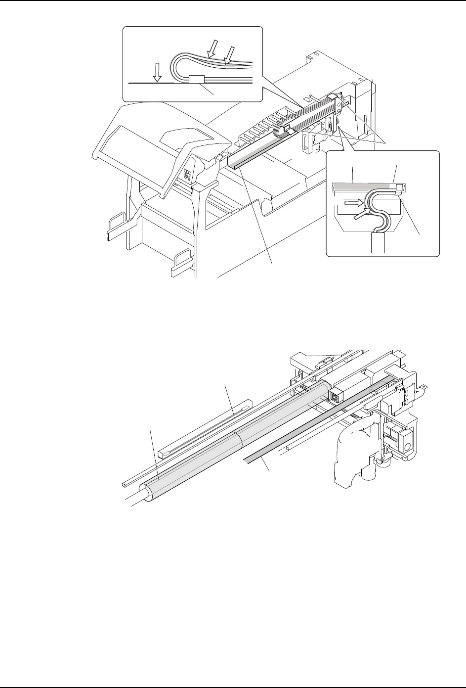 6. 请确认卷在平形电缆上的纤维胶带 ( 宽度 30mm 左右的银色胶带 ) 的状态。如果看见有