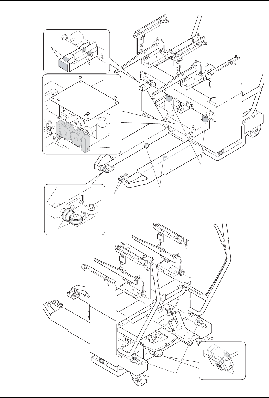 ·对 (4)、(7)、(8)、(10) 的支点销的加油,请在滑轨部的间隙周围涂敷润滑油。
