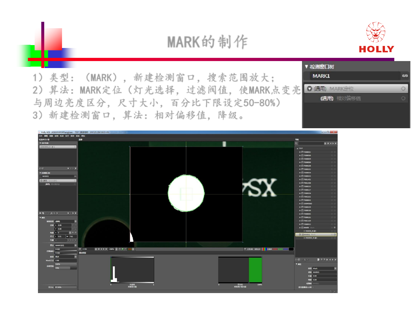 2)算法:MARK定位(灯光选择,过滤阀值,使MARK点变亮