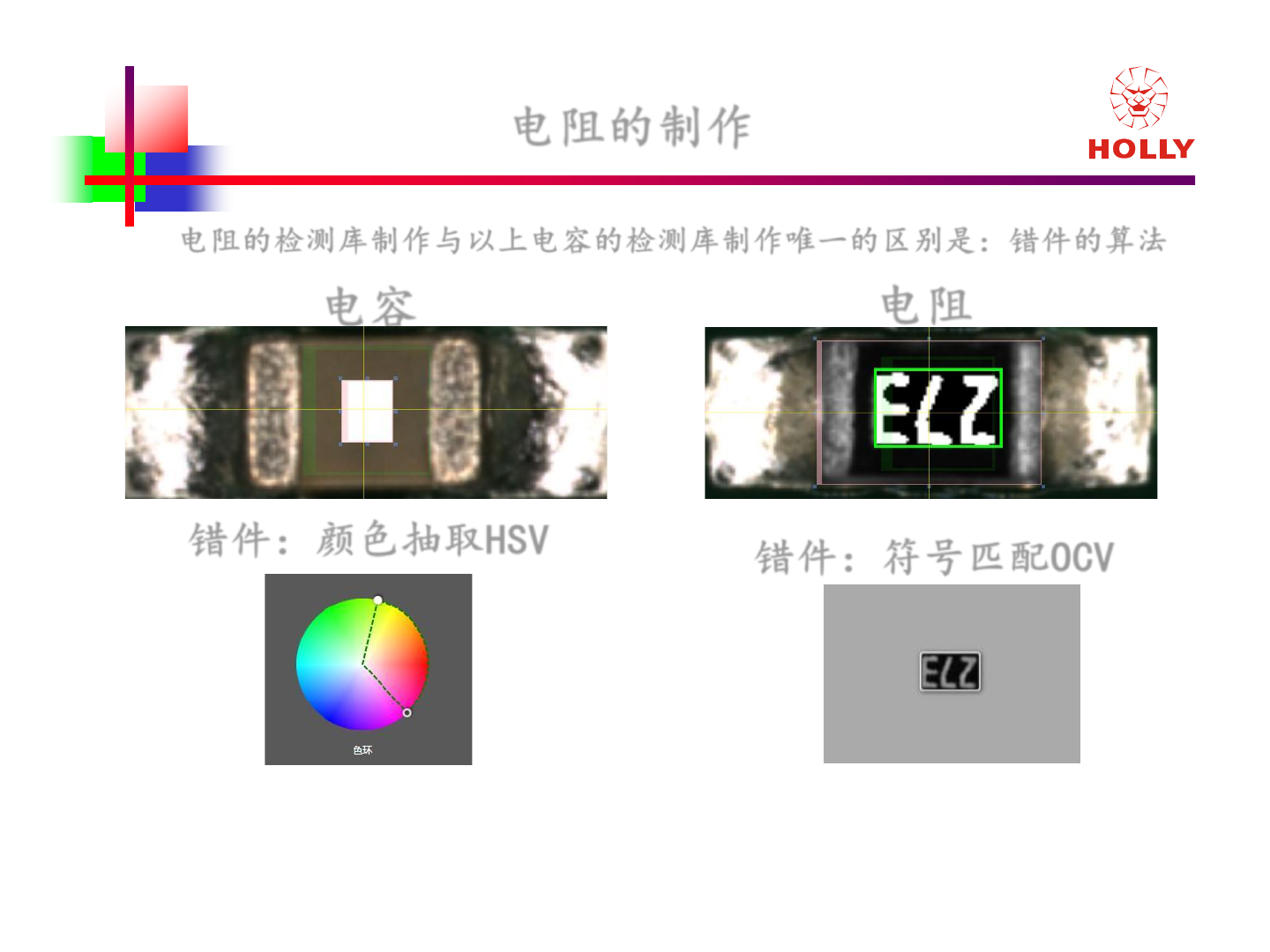 电阻的检测库制作与以上电容的检测库制作唯一的区别是:错件的算法