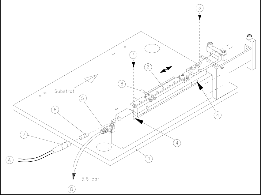 Abb. 1.5.4 Montage der X-Zentriereinheit auf der Hubtischplatte inkl. Anschluß