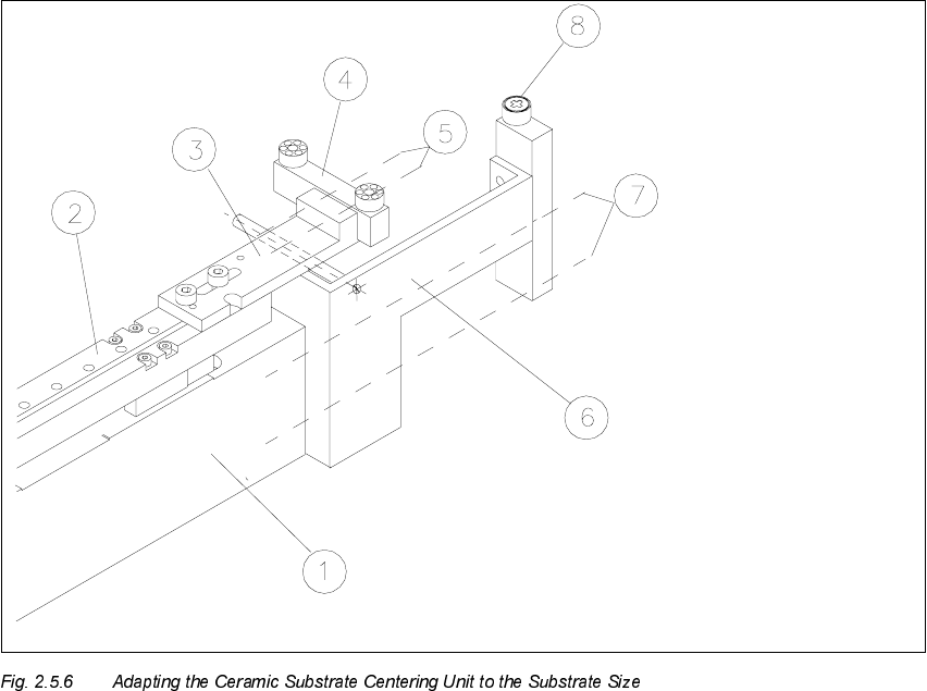 Install the stop unit kit 1 (fixed stop) and stop rail "", assembly (= movable stop) for substrates