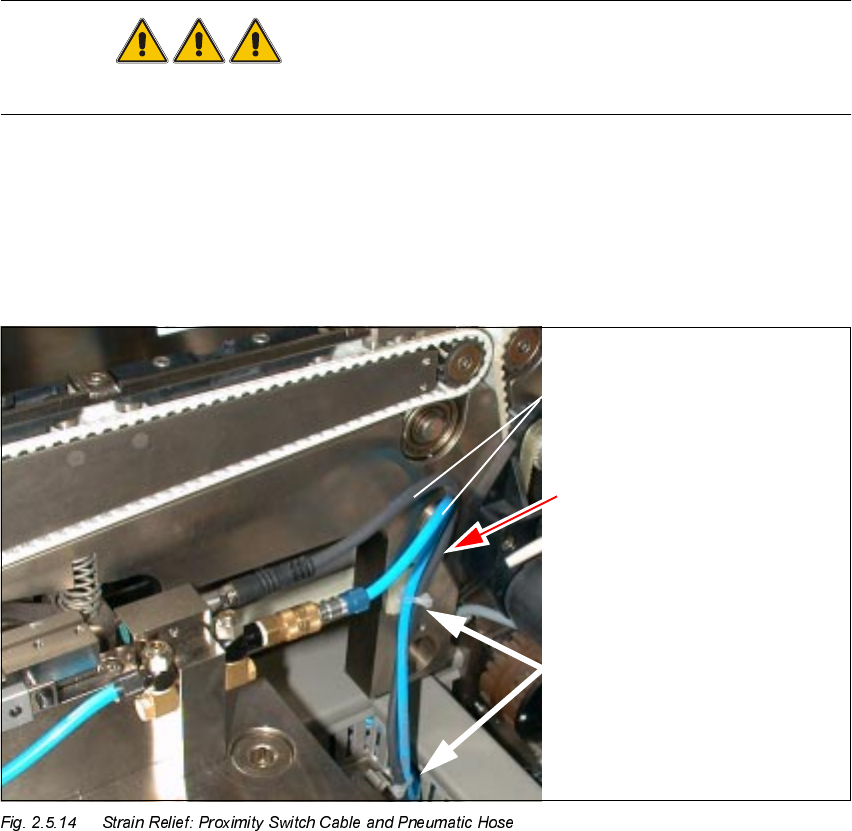 Å Using cable ties, fasten the pneumatic hose and the proximity switch cable such that cable and