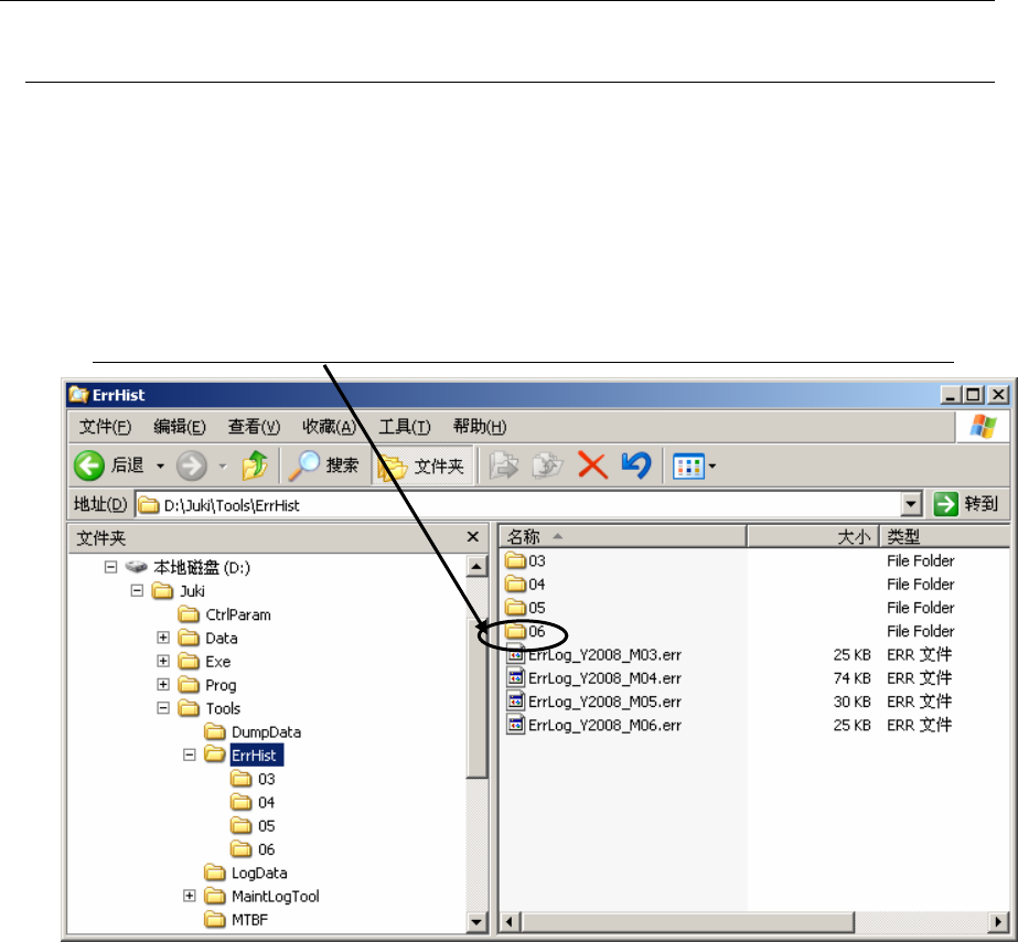 在「D:\juki\Tools\ErrHist」里有以月为单位生成的文件夹,以“出错号码(日-时分