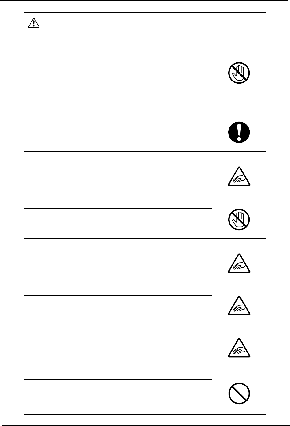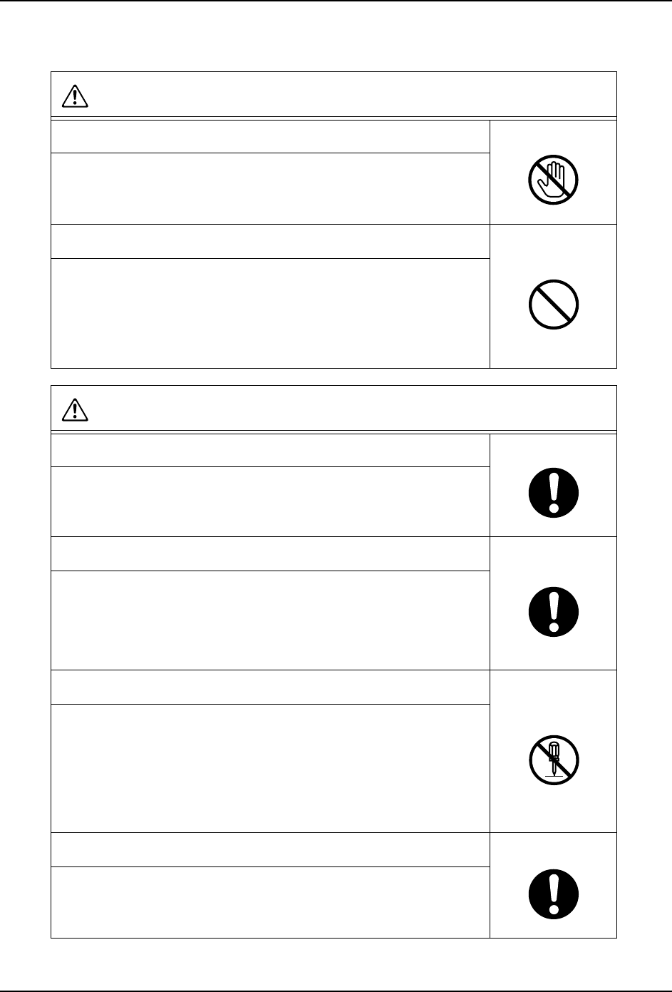 标记表示有警告和注意事项。具体的警告内容表示在图标内部