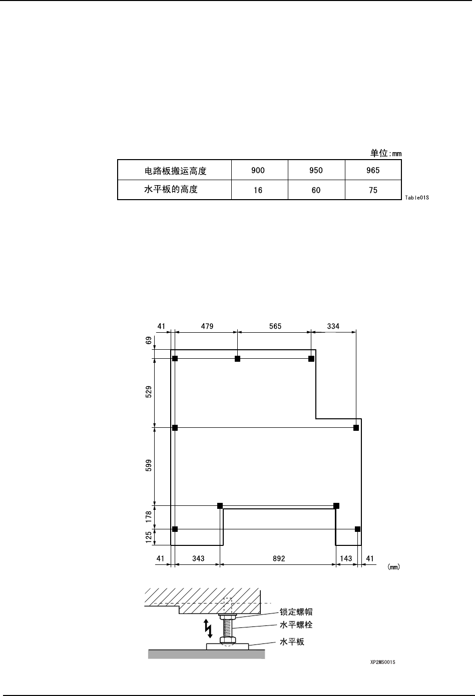 MEC-XP242-2.1S 7. 安装 XP-242E 机械手册 101 7. 安装 7.1 安置 7.1.1 要点 把水平板放在指定的位置,以确 保主机的水平。 此外,需要根据电路板的搬运高 度,选用适合的水平板。 7.1.2 方法 1. 参考下图布置水平板。 2. 把 2 个水平仪装在主机的机座上。( 横向和纵向 ) 3. 转动各个水平螺栓调整高度。 4. 确认电路板的搬运高度、机器的水 平度是否正确之后,请把各个锁定 螺帽拧紧。