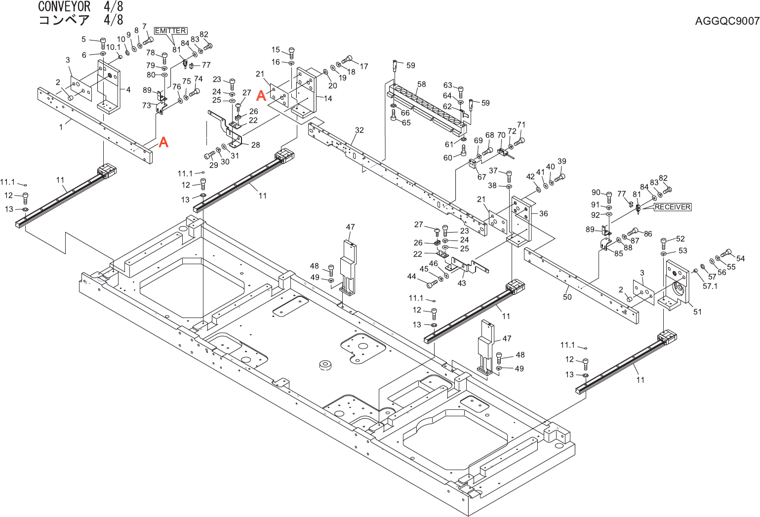 CONVEYOR 4/8 コンベア 4/8 AGGQC9007 No. Drg.No. & Code No. QTY Description Rating Materials Remarks 番号 図番 & コード番号 個 数 品名 規格 材質 備考 1 GGQC0074 1 PLATE プレート FE 2 GGQC2170 2 BLOCK ブロック AL 3 GGQC1940 2 SHEET シ ート OT 4 GG…