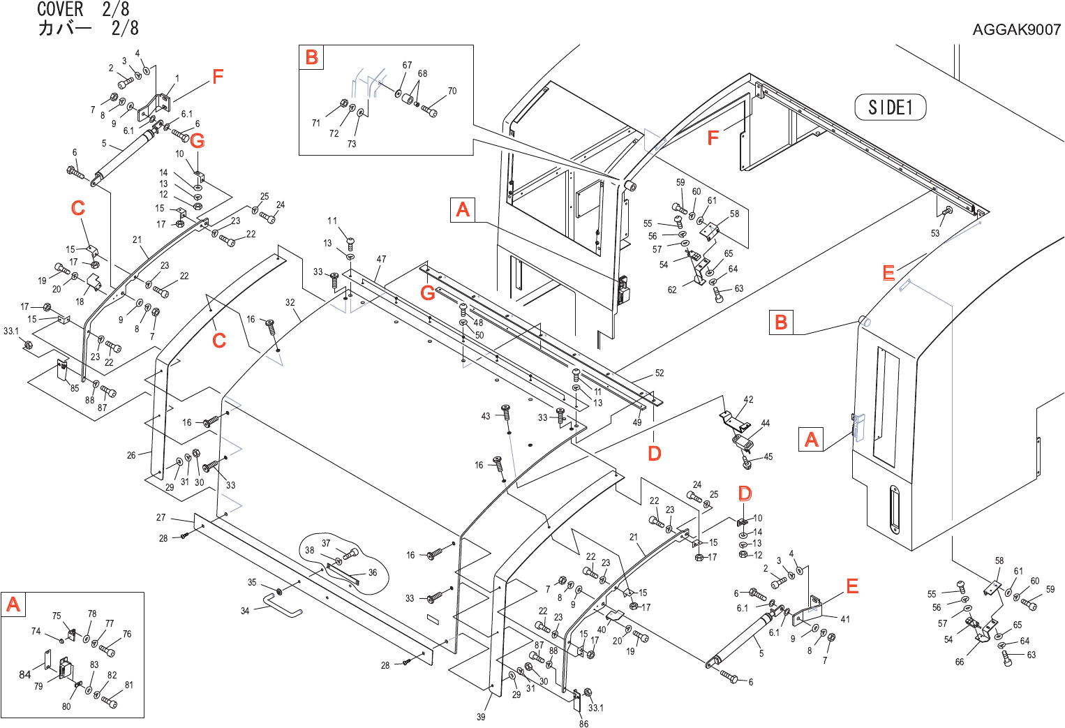 COVER 2/8 カバー 2/8 AGGAK9007 No. Drg.No. & Code No. QTY Description Rating Materials Remarks 番号 図番 & コード番号 個 数 品名 規格 材質 備考 1 GGAK1953 1 BKT BKT FE 2 H5322A 4 BOLT, HEX SOCKET ボルト 六角穴 M06X015 FE 3 W1024A 4 WASHER,…