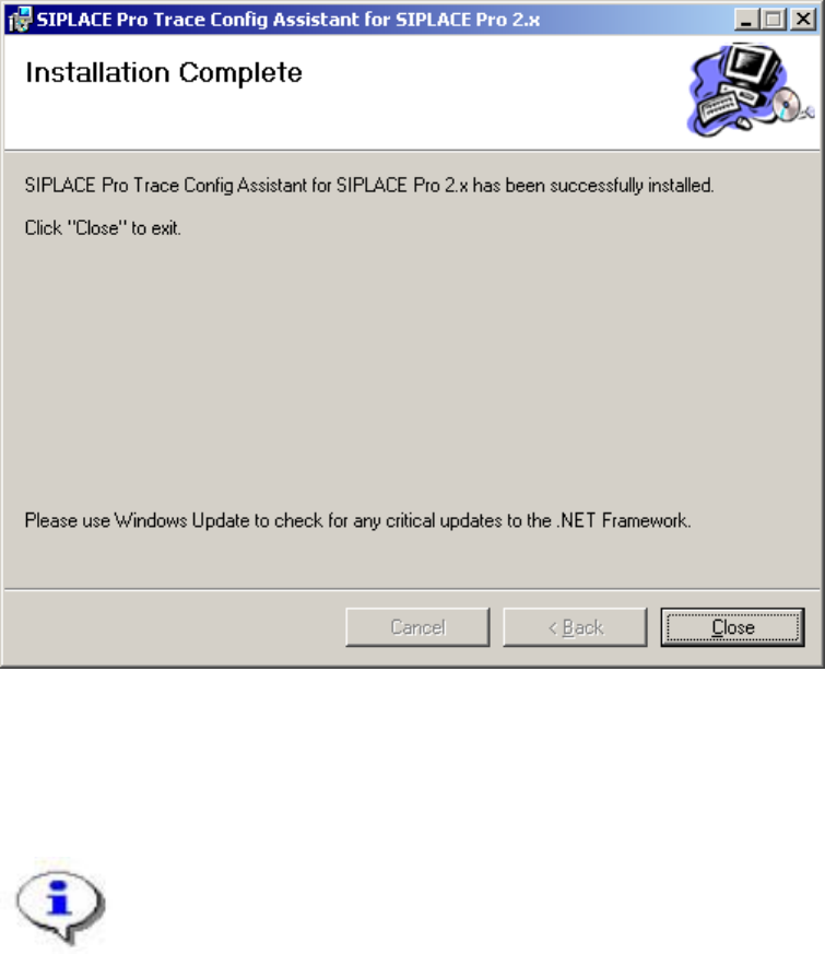 The SIPLACE Trace Config Assistant is now installed on your system.