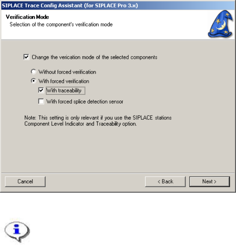 “Without forced verification” will clear the “Validate” flag in SIPLACE Pro, “With Forced Verification” will