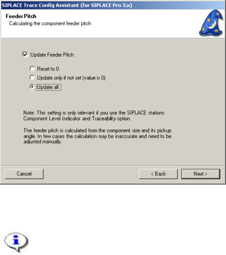 In this step you can update the feeder pitch of the selected components from Step 2.