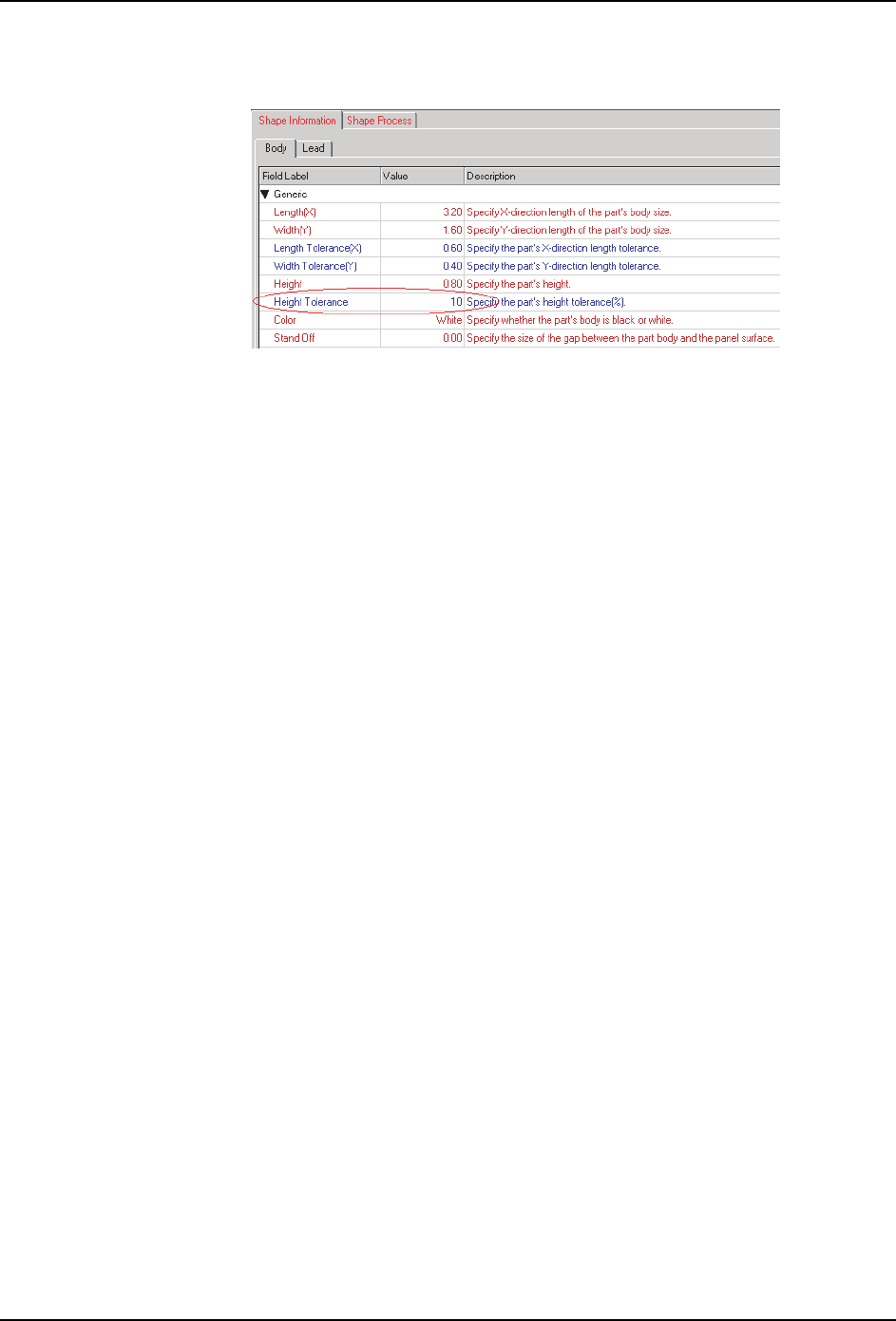 3. [Shape Data]-[Shape Information]-[Body]-[Height Tolerance]: 请输入元件竖立高
