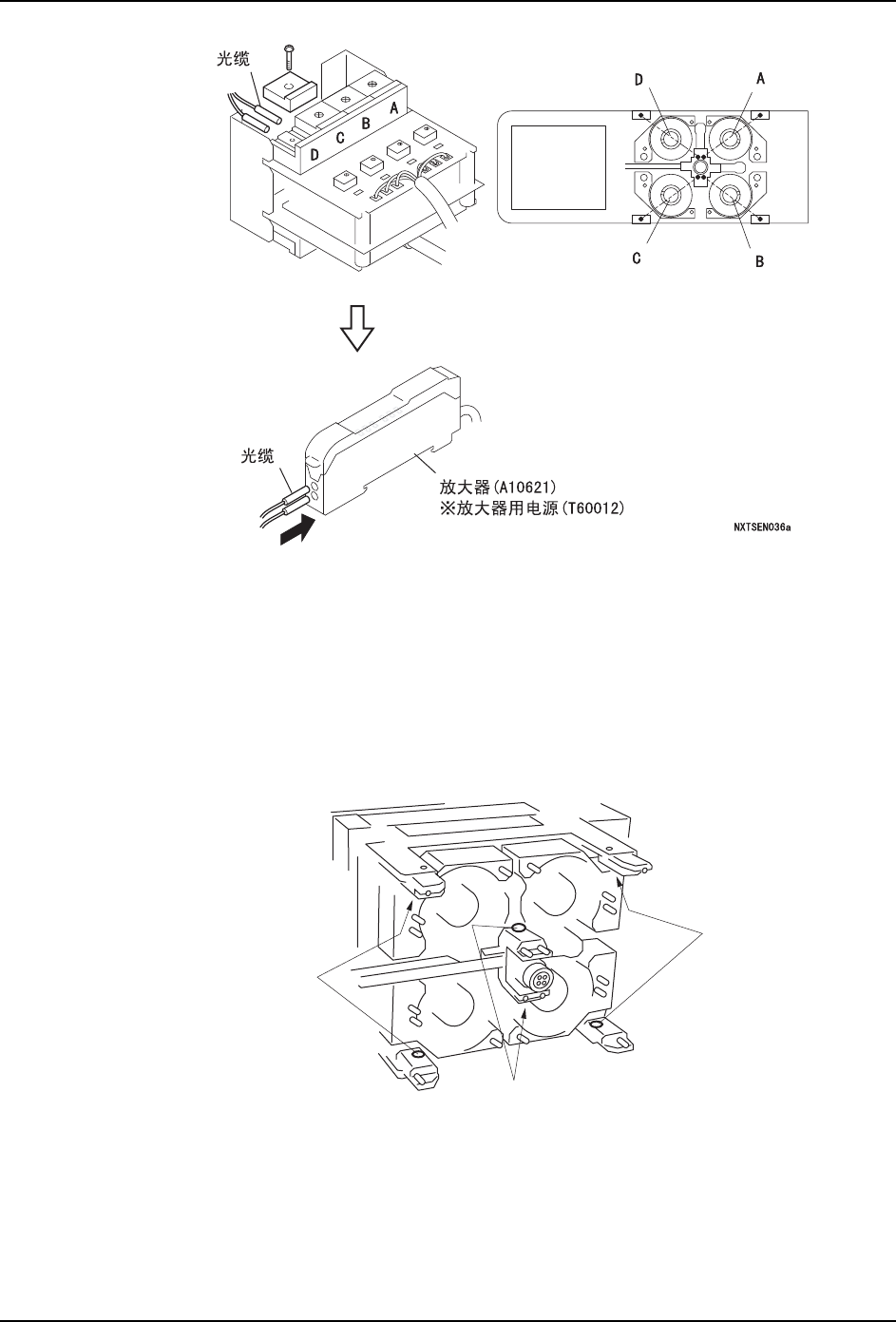 c. 请从工作头的放大器上取下光缆,连接到治具侧的放大器上。