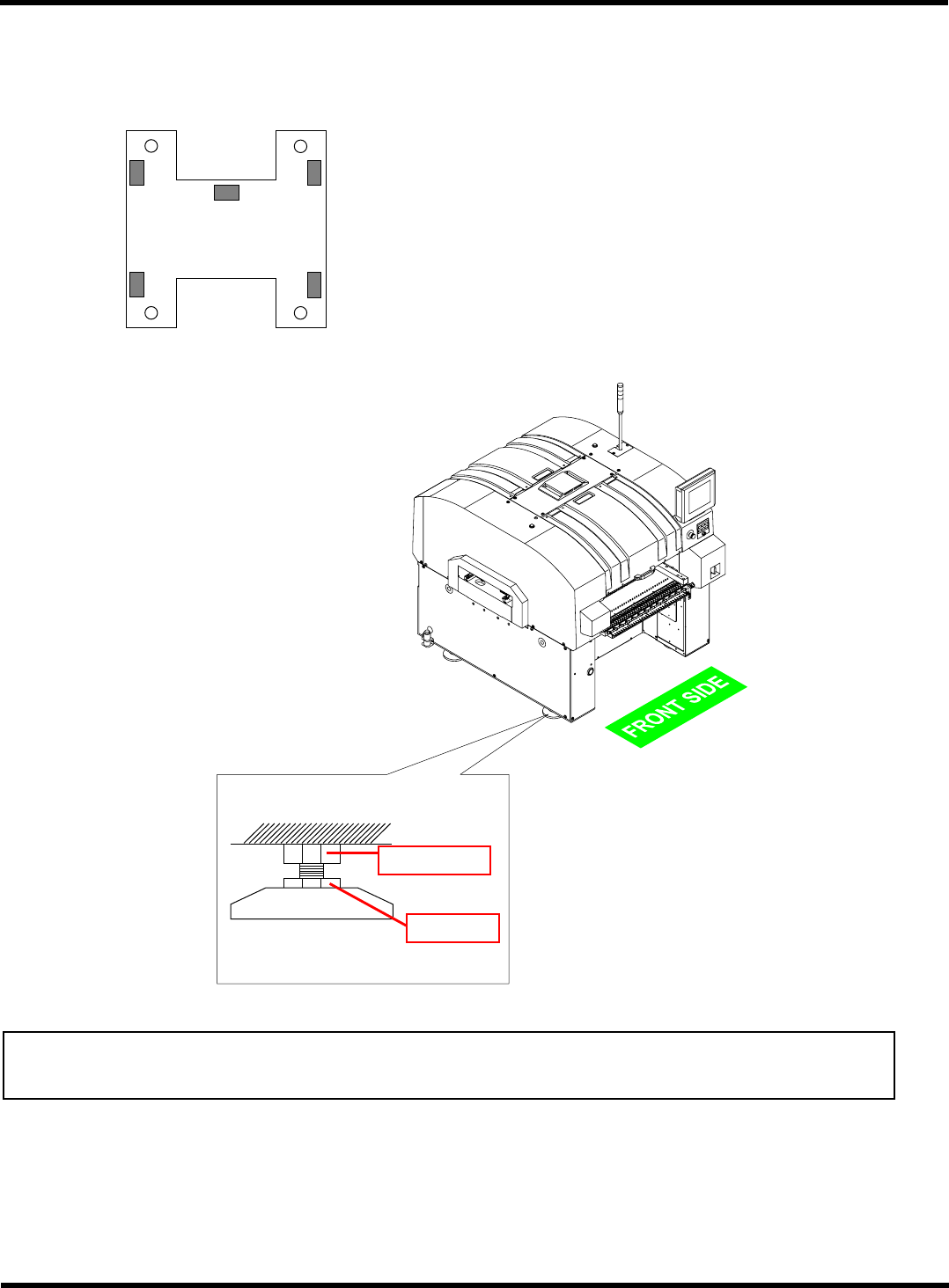 CM101-D 安装手册 1.2 设置步骤 Pa ge 1- 14 1.2.3 调整正确的水平位置 如下图所示位置安装水 平仪 (0.02 mm / m ) , 用调整螺栓调整至 1 刻度 (0.02 mm /m) 以下。 调整后, 拧紧锁紧螺母对其固定 。 : 水平衬垫 4 处 : 水平仪设置位置 5 处 通知 ∗ 我们推荐安装后以半年一次左右的频度确认水平位置。 EJM5B-A A 水平衬垫 EJM4A-14 9E 锁定螺母…