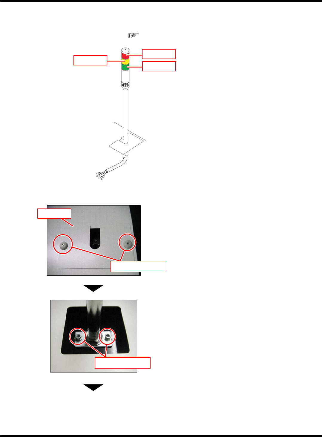 CM101-D 安装手册 1.2 设置步骤 Pa ge 1- 16 3. 固定状况显示灯 (3 段信号塔 ) 的电缆。 • 拧紧电缆夹安装螺栓固 定电缆。 4. 连接状况显示灯 (3 段信号塔 ) 信号用电 缆。 • 将电缆端部的插头插入 到机器主体内的插座 中。 EJM5B -056P 插头 插座 EJM5B -055P 电缆夹 安装螺栓 EJM5B- C-IMC01-A01-00