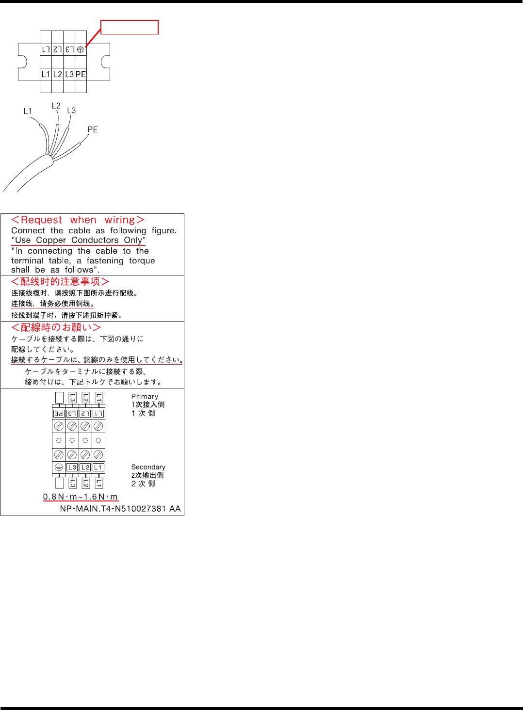 将电缆连接到主电源端子台时,请将拧紧转矩