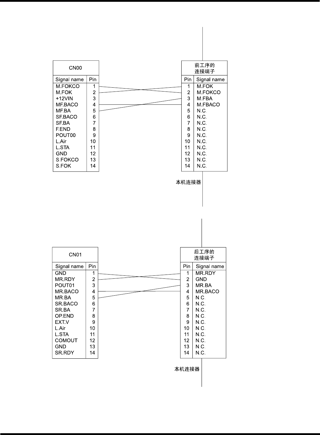 前后工序之间的基板交接、生产结束、把气压等信号在各机器之间用一根电缆连接。