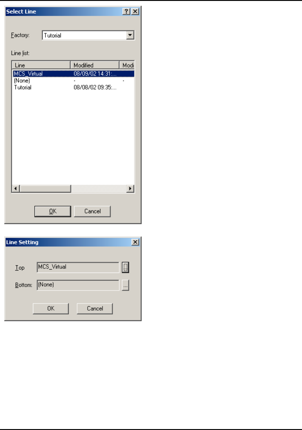 ETEN0631 4. MCS 数据 Fuji Flexa 学习手册 4-9 6. 单击 [Top] 文本框右边的 键 。 显示出 [Select Line ] 对话框。 5. 单击 [Line setting] 键。 显示出 [Line Settin g] 对话框。 FLXTD019 FLXTD020