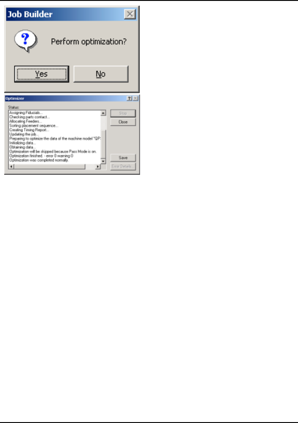 ETEN0631 4. MCS 数据 Fuji Flexa 学习手册 4-21 4-5. 优化顺序排列 3. 选择这两个机种进行最优化并单击 [OK] 键。 显示出 "Perform Opt imizing?" 提示。 1. 从 J ob Builder 工具菜 单中单击 [Optimize...] 键。 显示出 [Optimizer O ptions] 对话框。 2. 选 择 [Allocate feeders] …