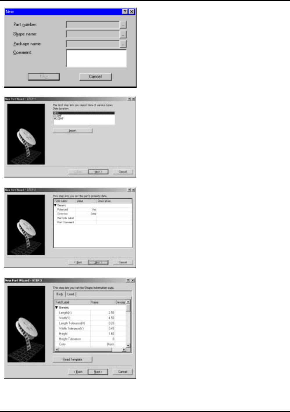 2. 在 [Part Number], [Part Shape] 以及 [Package