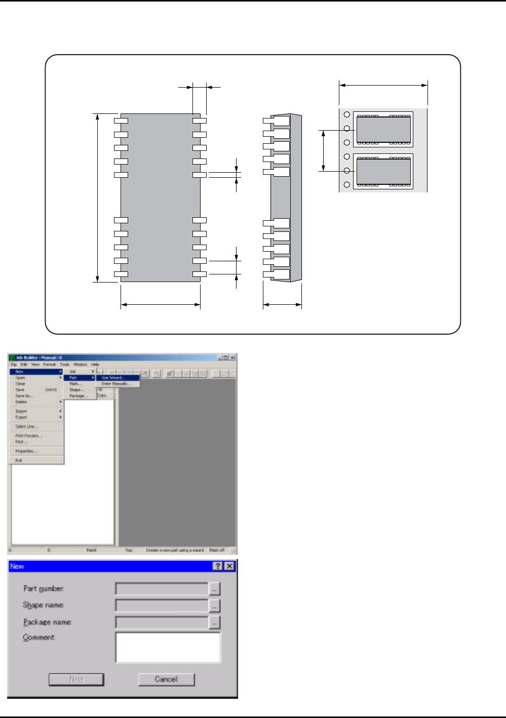 ETEN0631 5.手工输入 Fuji Flexa 学习手册 5-17 5-5-2. 零件 2 (SOJ26W) 7.60 3.55 17.00 12 1.260 0.700 1.500 24 Position X /Y X: 5.08 / Y: -2.43 X: 5.08 / Y: 2.43 X: -5.08 / Y: -2.43 X: -5.08 / Y: 2.43 2. 在 [Part Number] 字 段里 输入 "…