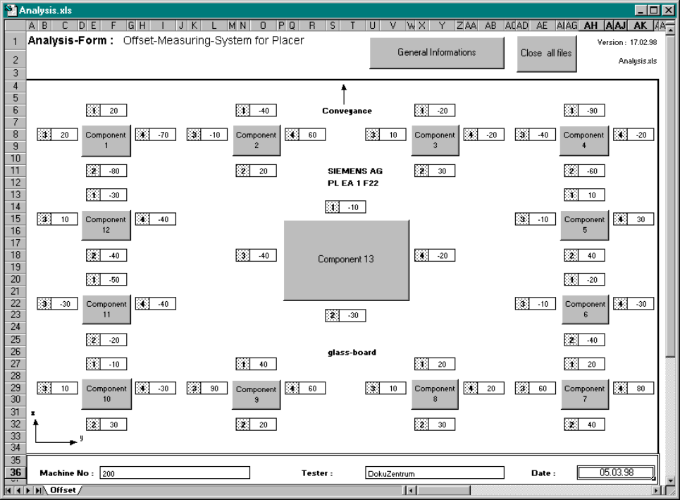 Use MS Excel to open the ANALYSIS.XLS file and fill in the ”General Information” (Machine No.,