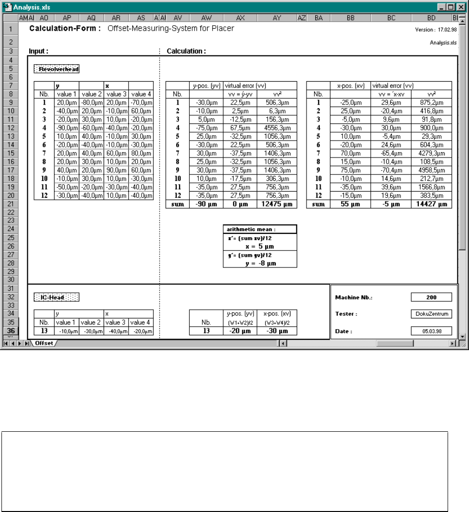 Operating Manual Offset calibrat ion system for SIPL ACE 80 S15 / S2 0 / F3 / F 4 Edition 01/ 98 Page 33 of 47