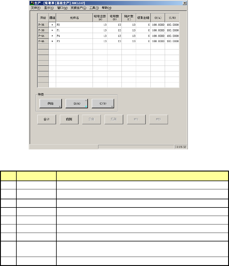 吸取数(B) 吸取成功的元件数。
