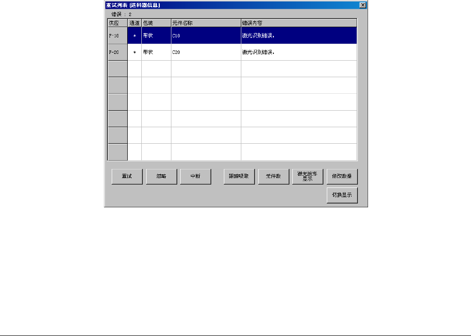 双击重试列表中(未贴片列表、供应装置信息)该元件所在的行,则显示与该行错误对应的帮助文