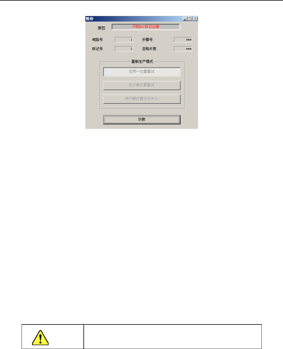 发生BOC标记、基准领域标记识别错误时,会显示如下画面,进入暂停状态。