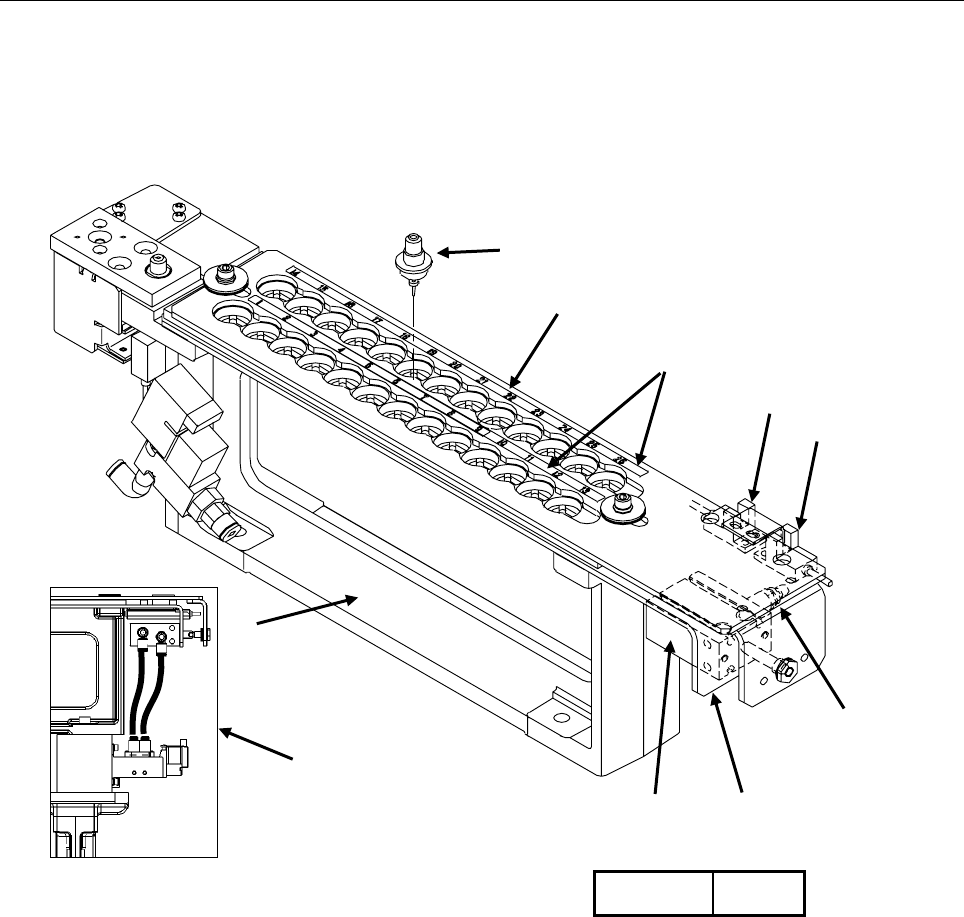① 送料器台架 ④ 锁定轴 ⑦ 台架标记