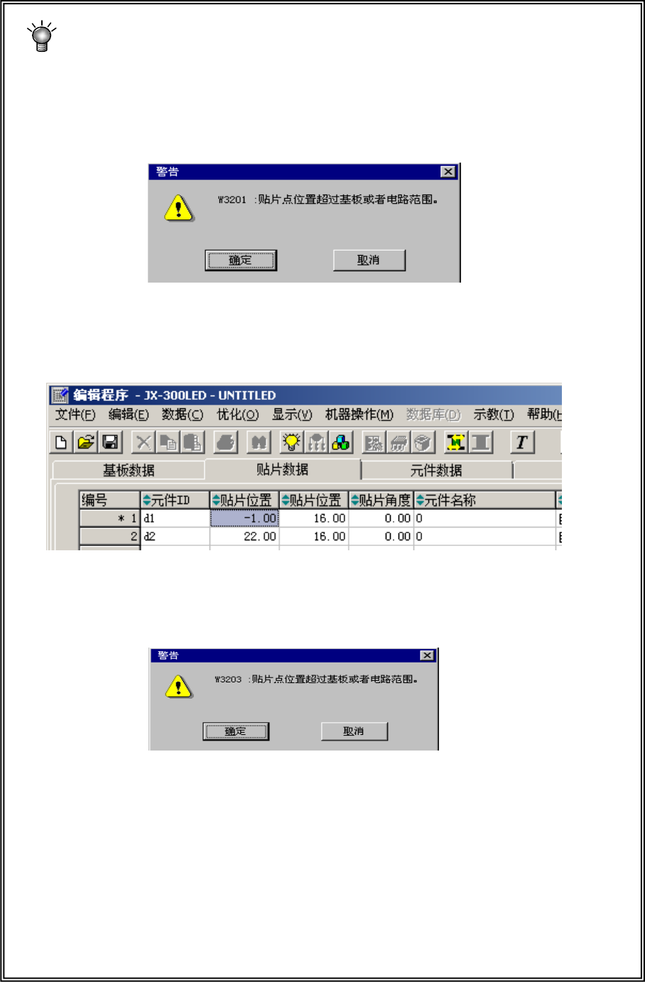 ※发生范围检查错误时,请先检查“贴片数据”,如果没有问题,请再检查各“基板数