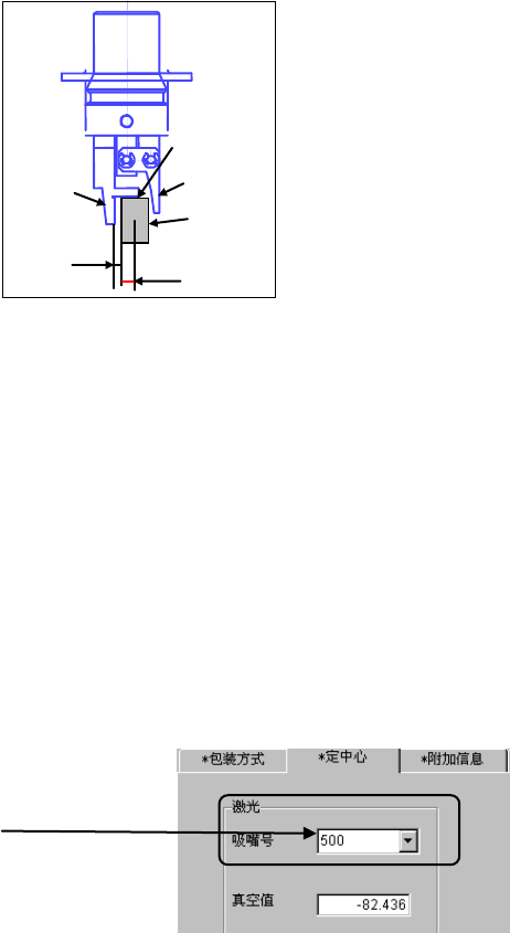 ① 抓取位置: “Y”项,输入元件中心与抓取吸嘴固定侧手臂抓取面中心的偏移值(见