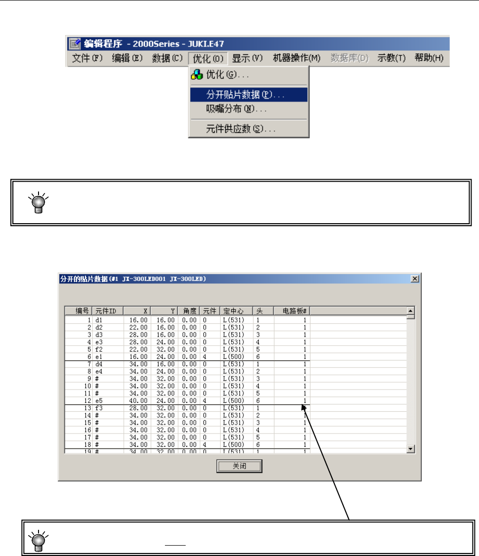 请从菜单中选择“优化”/“分开贴片数据”。
