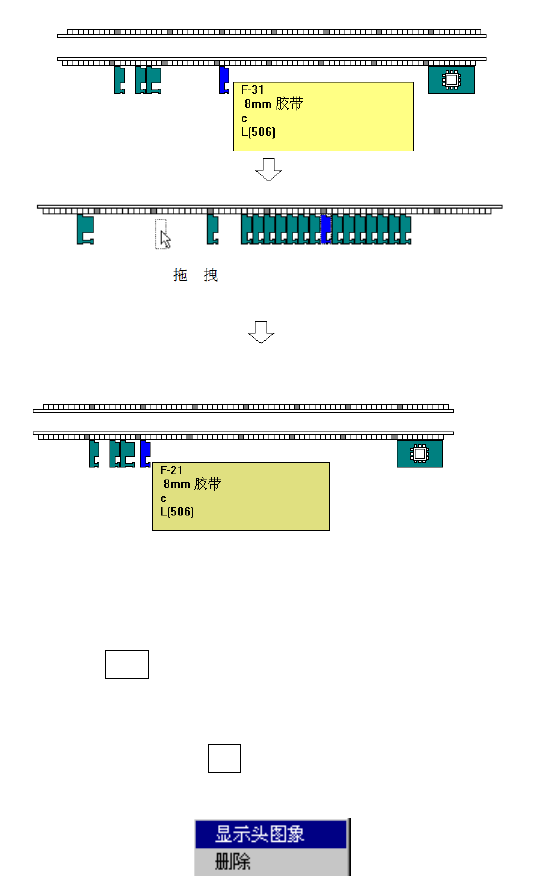 选择要移动的供料器后,拖曳到目标位置,释放(松开按钮),该供料器就会移动到其最近的供