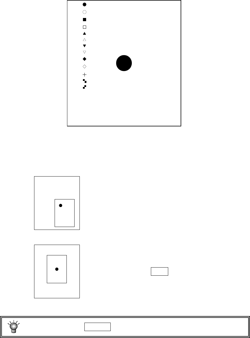 第 1 部 基本篇 第 4 章 制作生产程序 4 ) 请选择标记的形状 。 标记的形状将被自动判别。判别结果有误时,请用 HOD 的↑键、↓键 (X 、 Y 移动上下箭头键 ) 选 择正确的标记。 [*] [ ] [ ] [ ] [ ] [ ] [ ] [ ] [ ] [ ] [ ] [ ] [ ] [ ] PR 5 ) 请进行检出框的示教 。 完成 4 )的操作后,画面中心 ( 默认窗口 ) 会自动显示标记尺寸 1.5 倍的标记。 要…