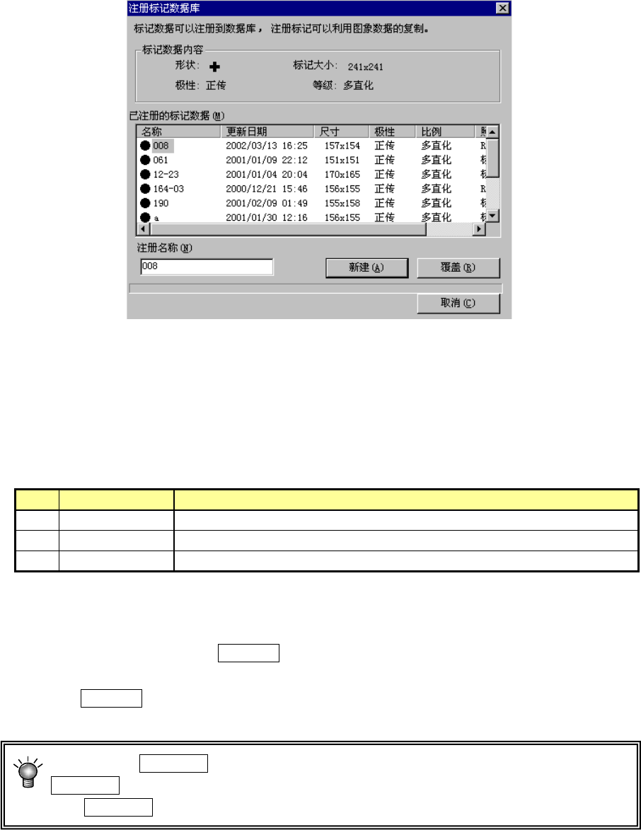 要把示教数据新注册到标记数据库时,请输入注册名称,然后按下<新建>按钮。