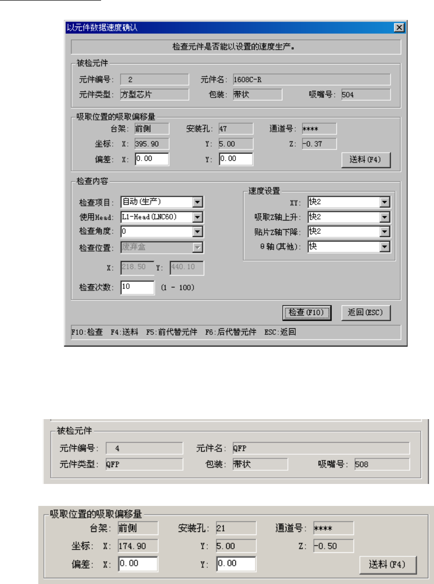 从菜单选择「确认速度」后,显示如下的设置[以元件数据速度确认]对话框。