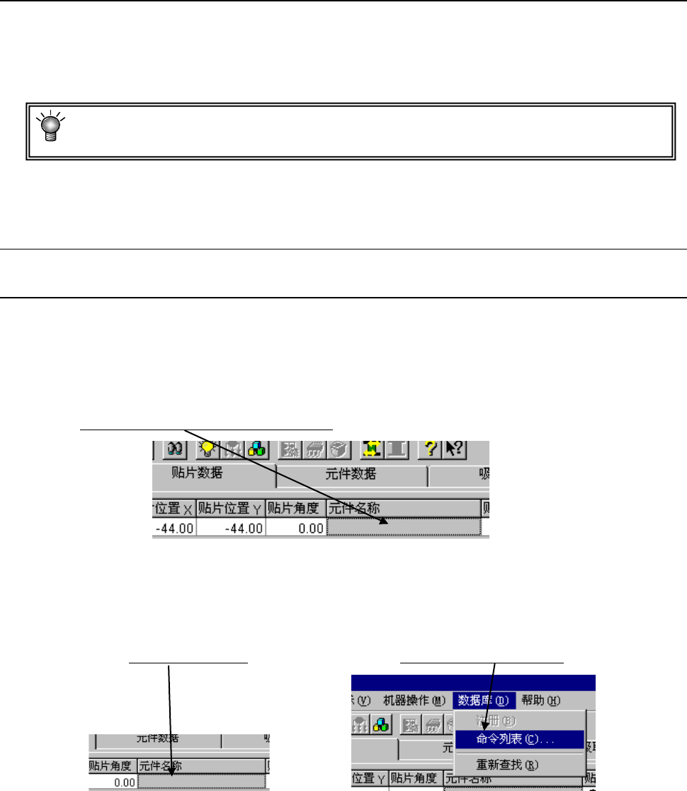 1) 请单击空白的元件名称栏。 2) 请单击“数据库”/“命令列表”。
