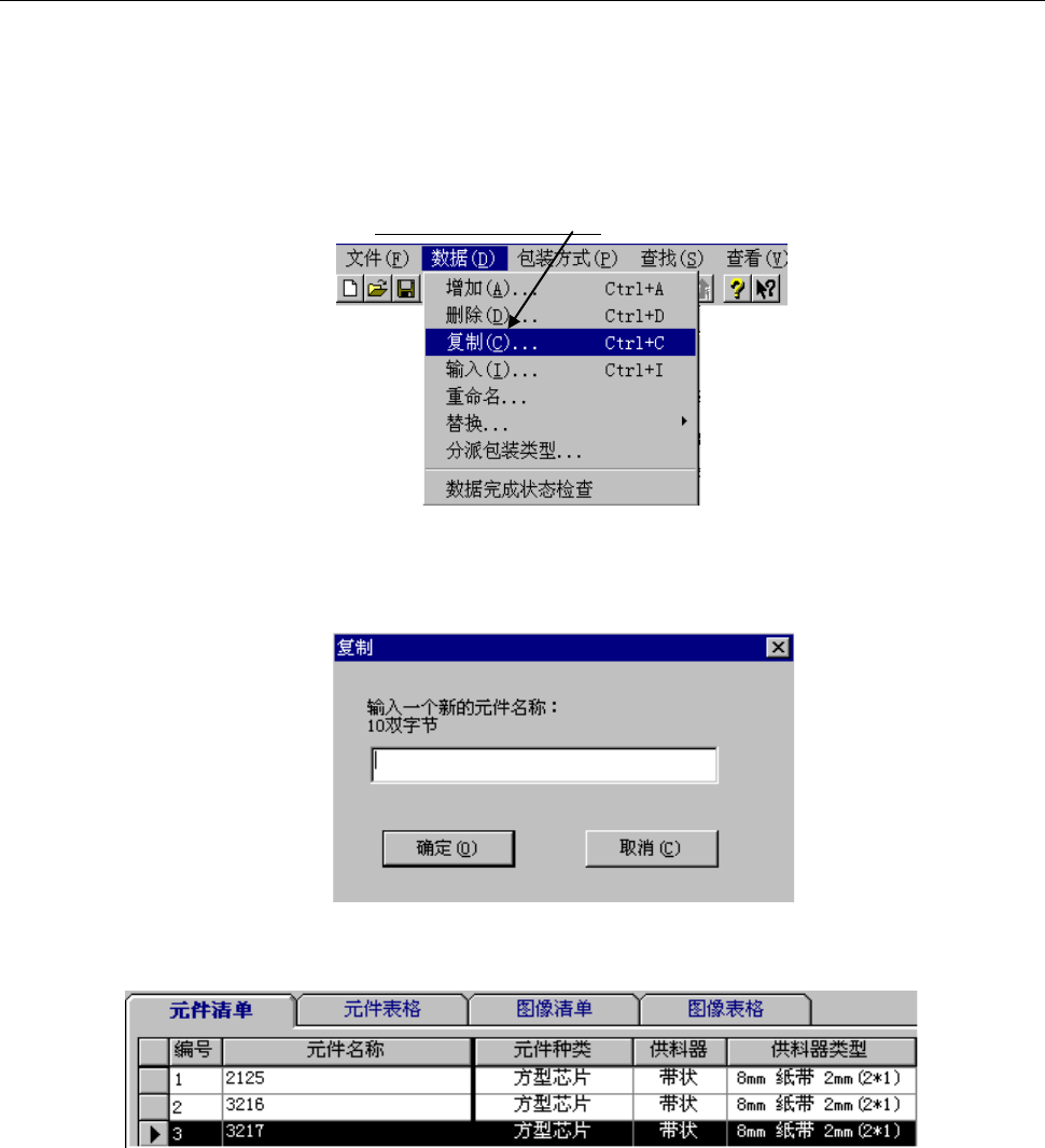 1) 选择要复制的元件名后,单击“数据”/“复制”。