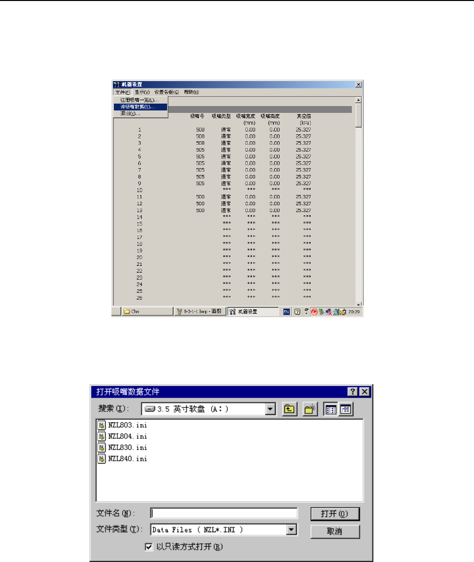 从菜单栏中选择“文件”/“读吸嘴数据”,则会显示“打开吸嘴数据文件”画面。