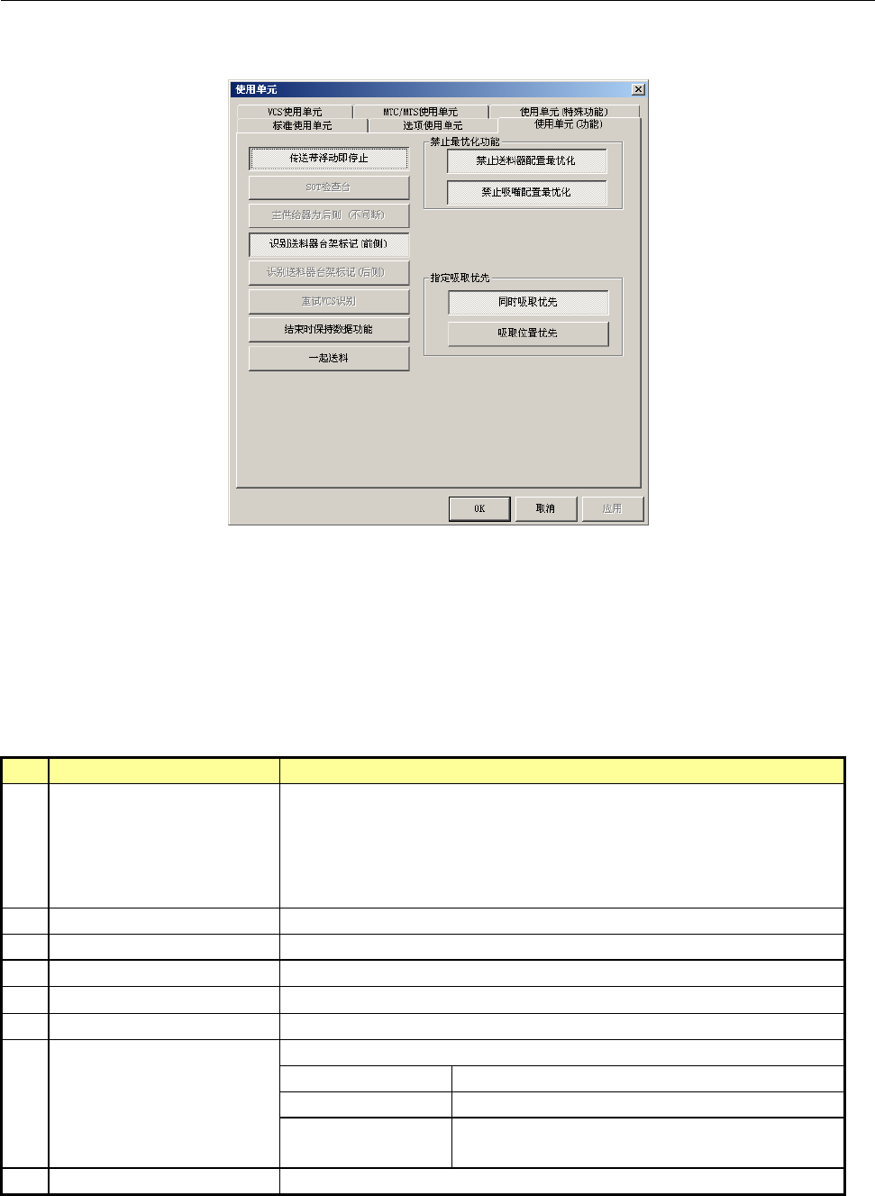 选择“使用单元(功能)”选项卡后,显示如下“使用单元(功能)设置”画面。