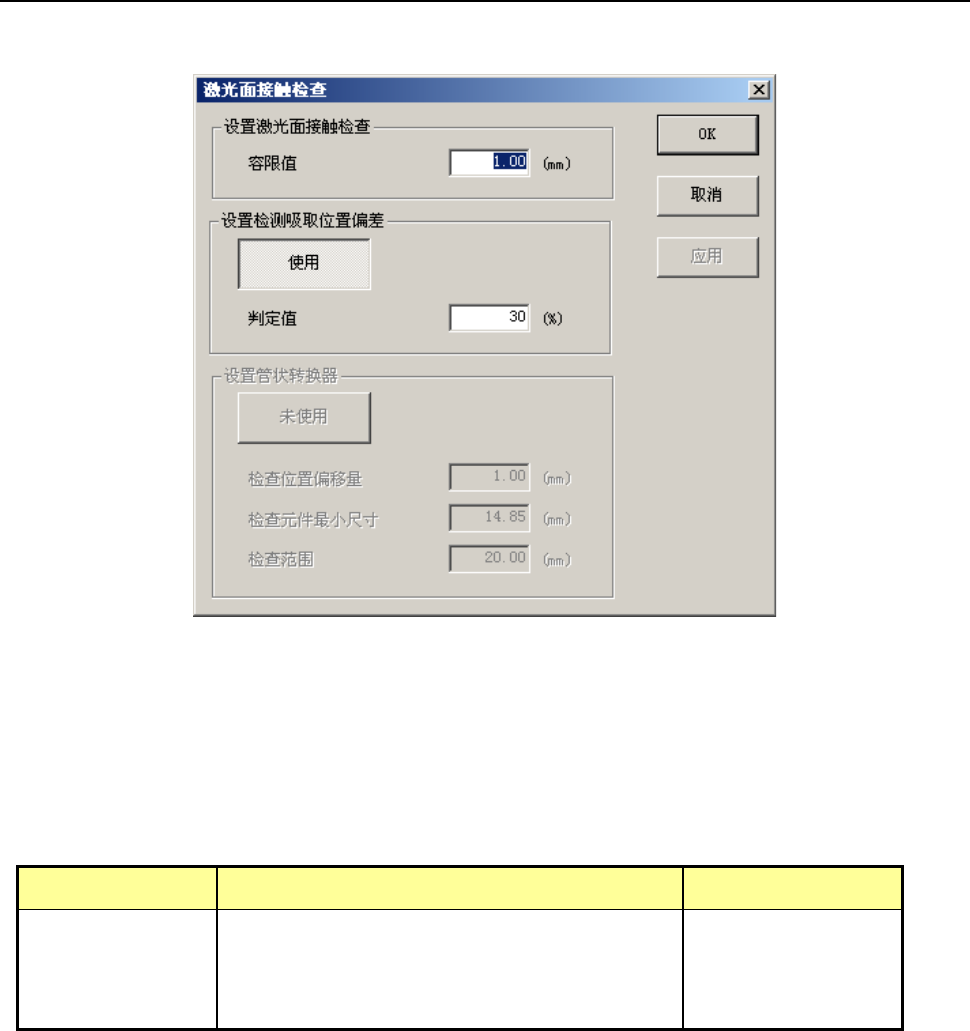 选择激光面接触检查后,显示下图「激光面接触检查对话框」。