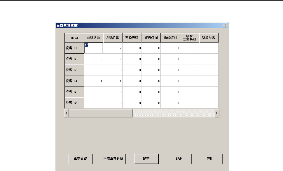 更换贴片头吸嘴时,将已更换的贴片头吸嘴的更换次数设置为“0”,则可进行初始化。